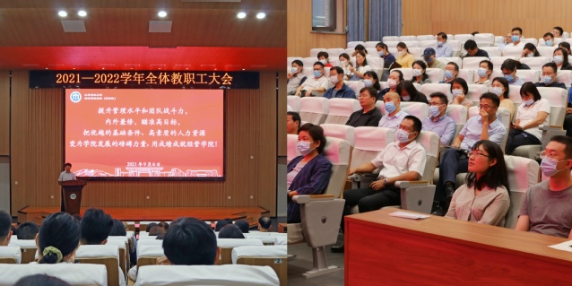 在全院教职工动员大会上,陈盛伟以“提升管理水平和团队战斗力,内外兼修,瞄准高目标,把优越的基础条件、高素质人才资源变为学院发展的磅礴力量,用成绩成就经管学院”为题,向全院教职工做新学期工作动员,号召各系室行政单元和业务单元,细化责任,打造特色,在课程建设、教学、科研、团队等方面进行一些科学尝试,努力在新学期创造新成绩,为学校作出新贡献。